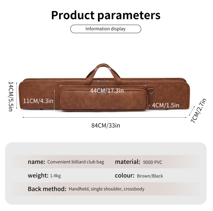 7位插袋,台球杆包,精致内饰,多隔层收纳物品